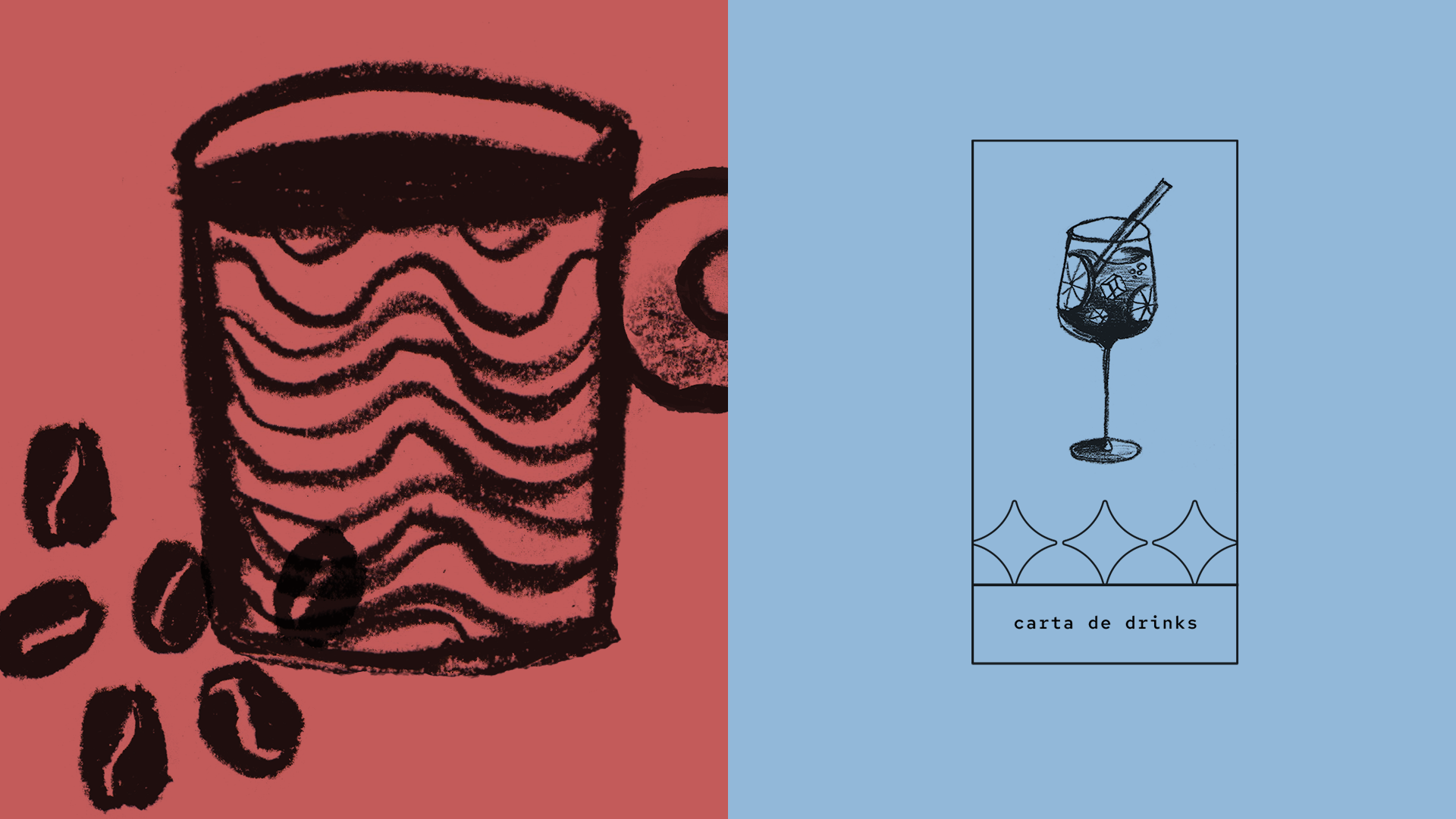 As ilustrações foram feitas à mão com pastel oleoso, trazendo a manualidade e o artesanal tão presentes na produção dos cafés da marca. A escolha por ilustrações feitas manualmente também busca refletir a raiz artística do bairro, que conta com a Escola de Artes Visuais do Parque Lage, instituição fundamental para a disseminação das artes plásticas no Brasil e pela formação de diversos artistas importantes na história da arte brasileira.